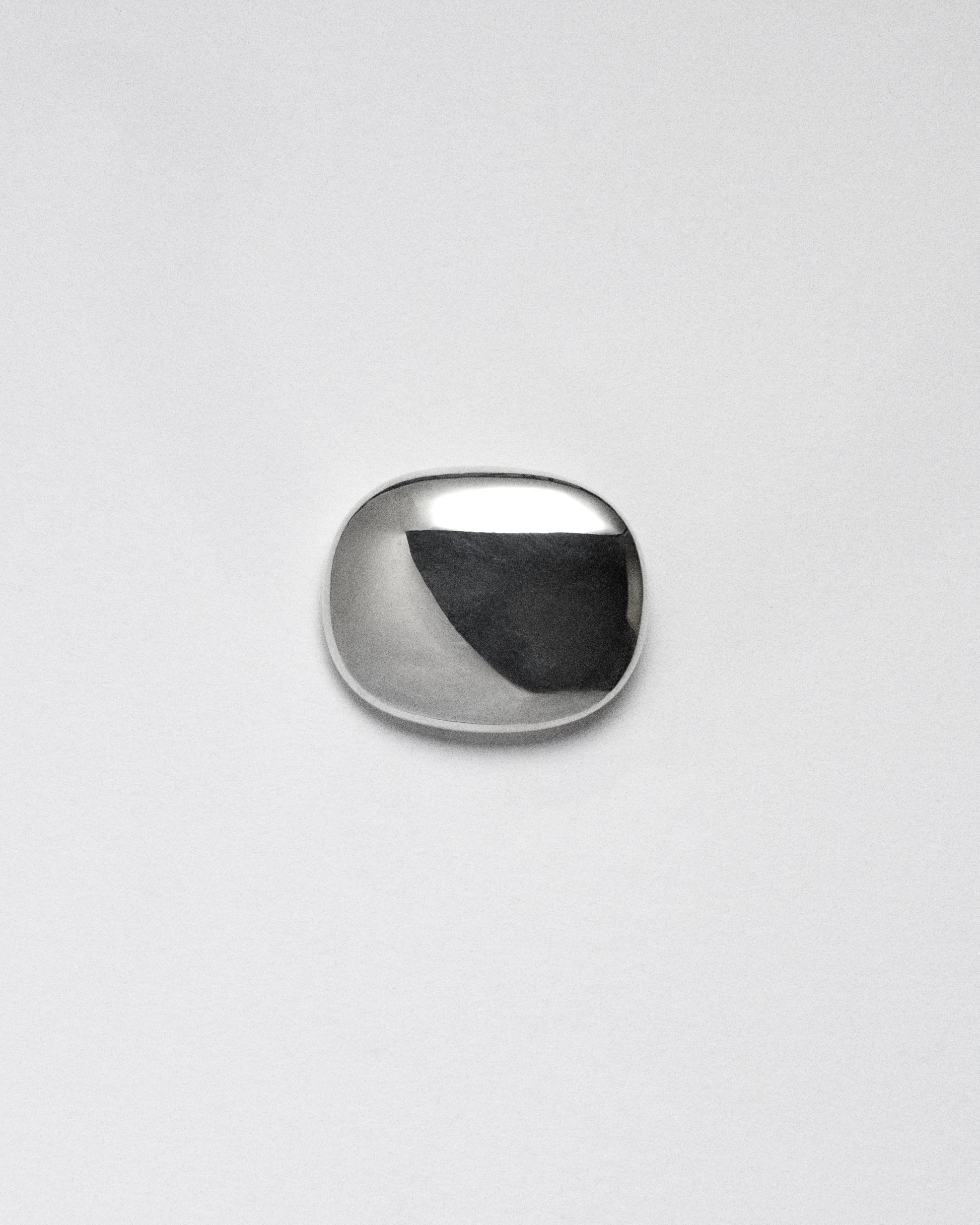 Its clean lines and smooth, polished surface delicately reflect the light. The generous volume, achieved through the electroforming technique, contrasts with its remarkably light feel when worn.