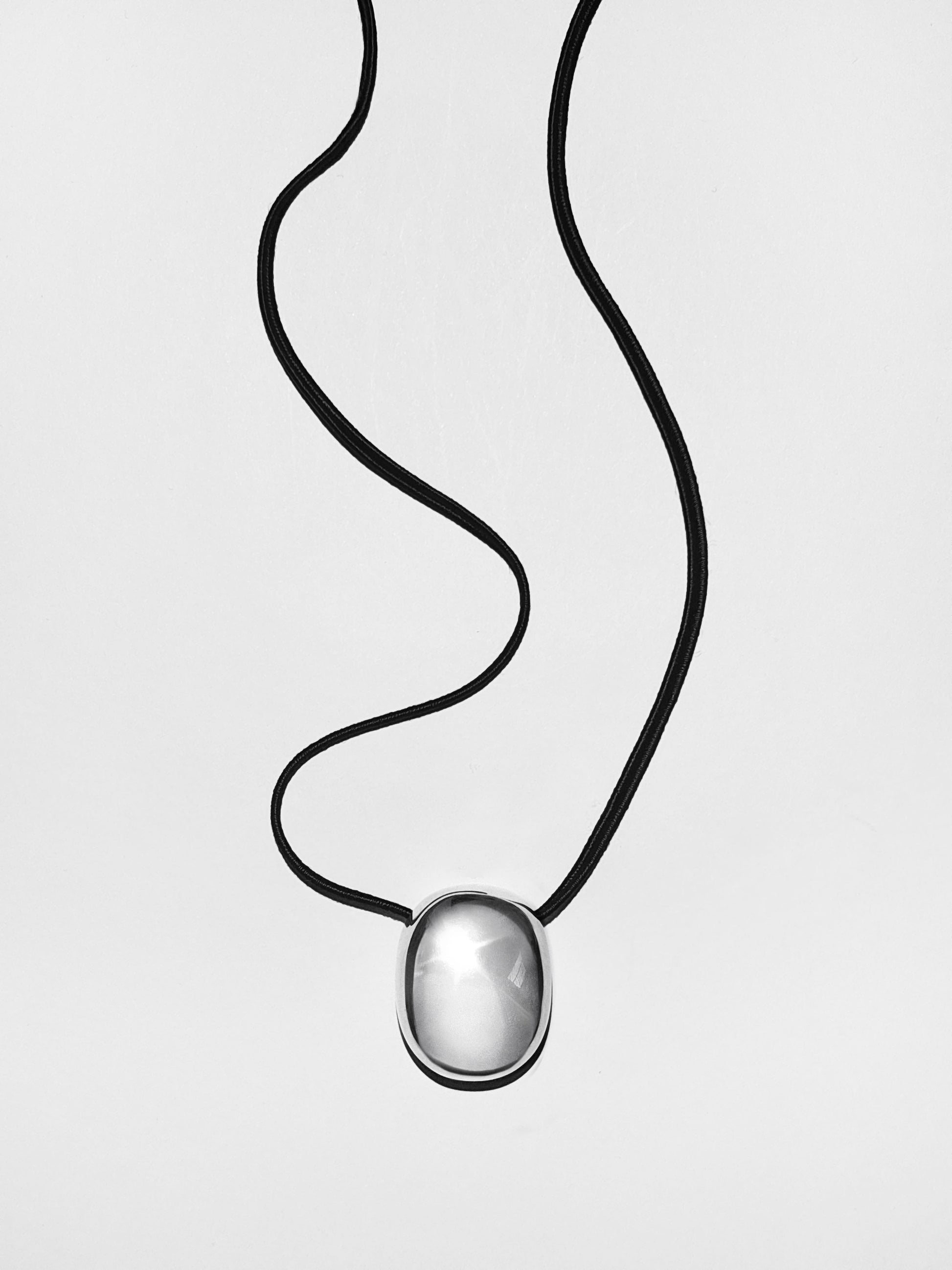 BLOWBLOW NECKLACE in sterling silver & black silk cord