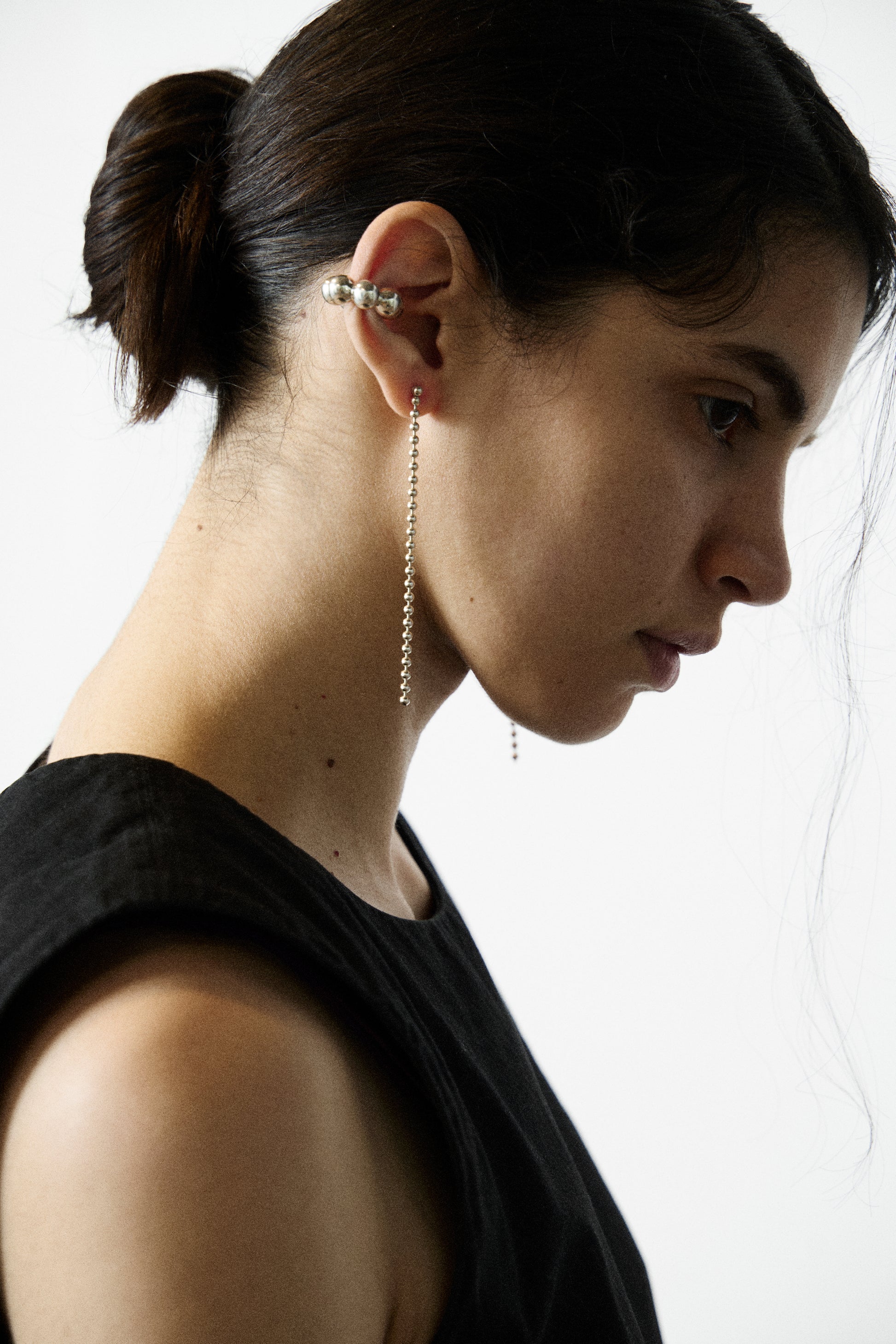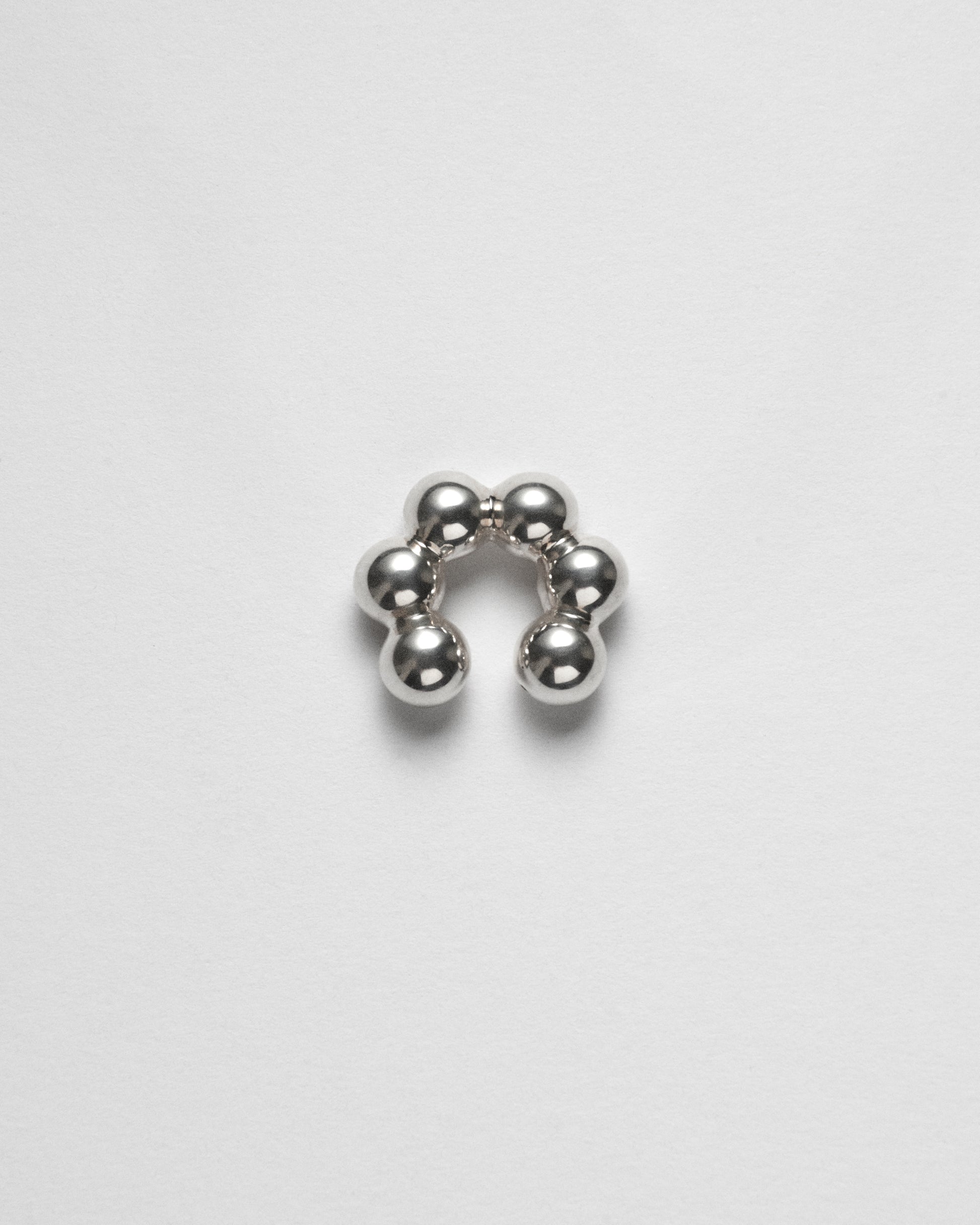 Modèle sans perçage qui s’adapte au contour de l’oreille comme un bijou de peau. Sa silhouette arrondie et sa surface lisse captent la lumière avec justesse. Volumineuse sans être lourde, elle doit sa légèreté à la technique d’électroformage.