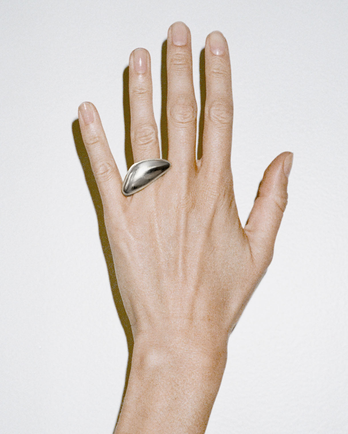 Modèle à la forme ronde, inspirée des courbes organiques que l’on retrouve dans la nature. Son style épuré et sa surface lisse et brillante captent délicatement la lumière. Son volume généreux, obtenu grâce à la technique de l’électroformage, contraste avec sa légèreté au porté.