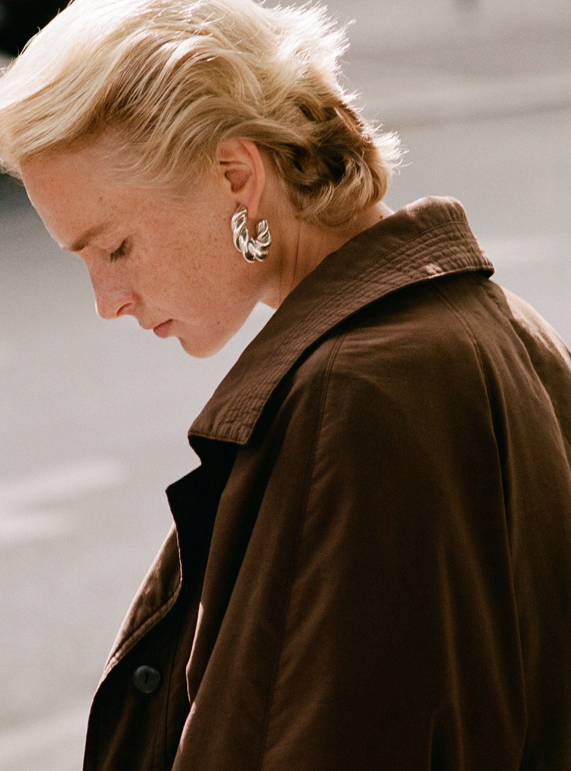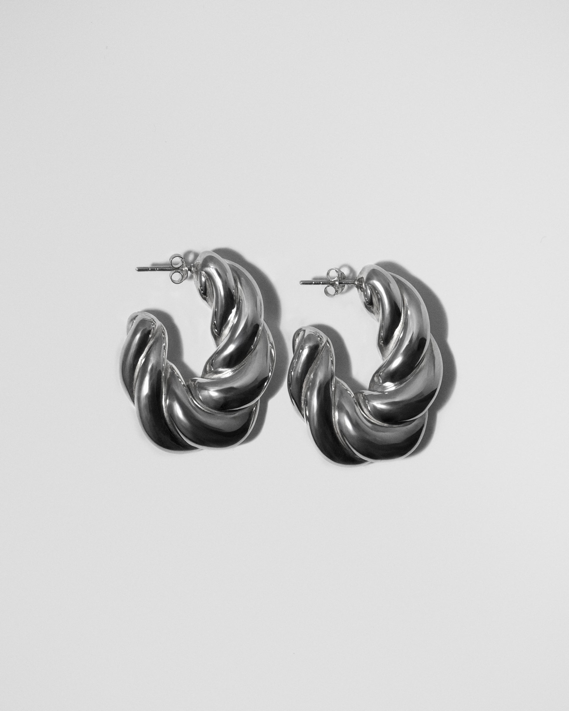 Modèle à la forme torsadée, qui joue avec la lumière grâce à sa surface lisse et brillante. Son design épuré révèle un volume affirmé, rendu possible par la technique d’électroformage, qui lui confère une présence légère et confortable.
