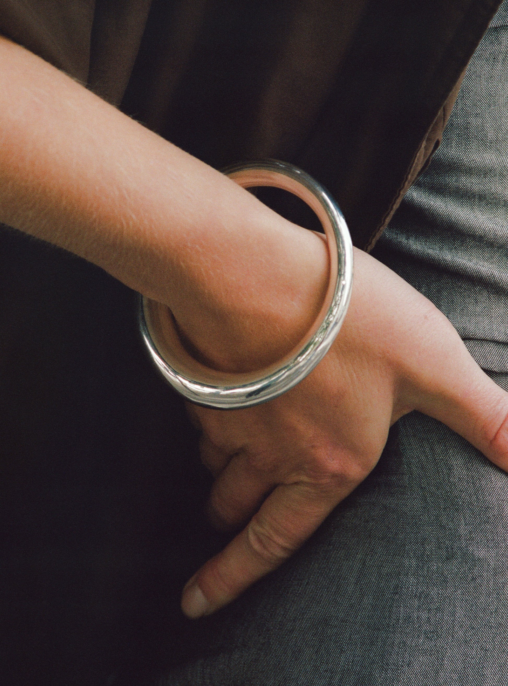 Modèle à la forme ronde, inspirée des courbes organiques que l’on retrouve dans la nature. Son style épuré et sa surface lisse et brillante captent délicatement la lumière. Son volume généreux, obtenu grâce à la technique de l’électroformage, contraste avec sa légèreté au porté.
